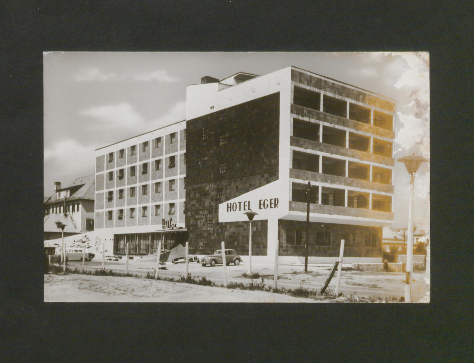 Az 1963-ban átadott Eger Hotel tervezője a budapesti Középülettervező Vállalat kollektívája Perczel Dénes vezetésével. A 76 szobás új szálloda külseje kék majolikás díszítést kapott. A nyocvanas évek elején a szállodát átépítették és kibővítették. Az új épület tervezője Botos Barna építész volt. Bővült a férőhelyek száma és a szolgáltatások köre is. Később a 2000-es években tovább bővítették egy 1700 főt befogadó konferenciateremmel. Napjainkban a Hotel Eger és Park egy szállodaként két kategóriában ajánl szállás és kikapcsolódási lehetőséget a városba érkező vendégek számára.