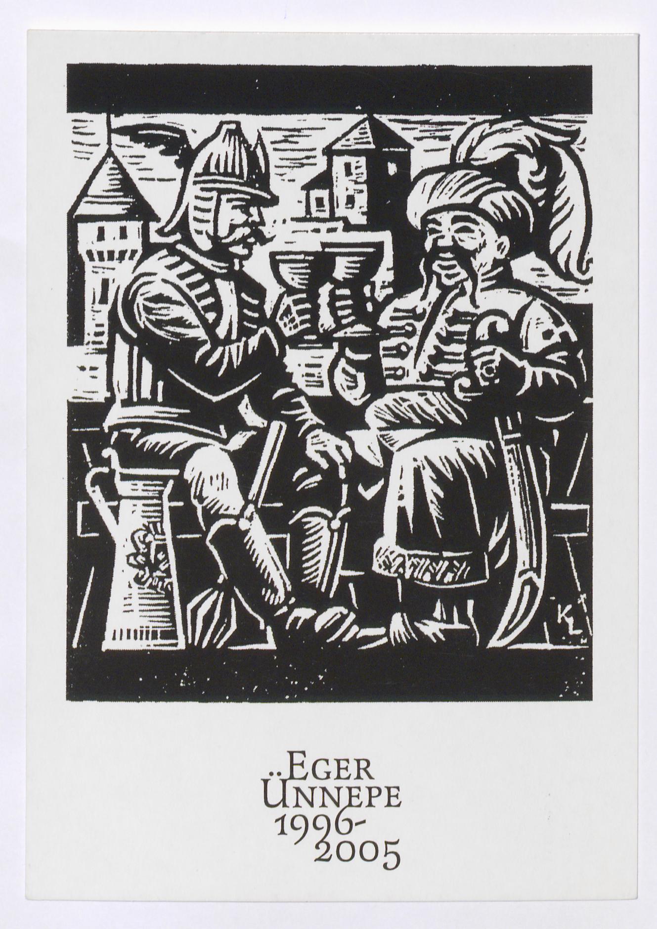 A KL szignójú metszeten a várral a háttérben Dobó István koccint a török szultánnal