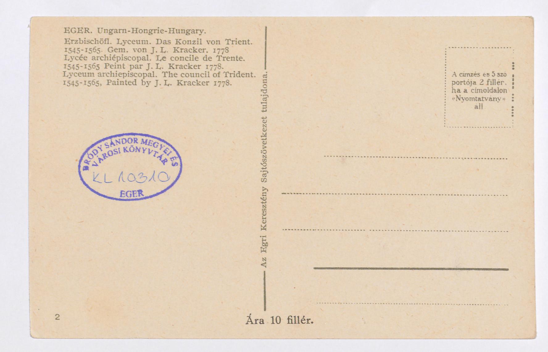 Eger : Érseki liceum : az 1545-1565-ki trienti zsinat [!] : fest. Kracker J. L., 1778