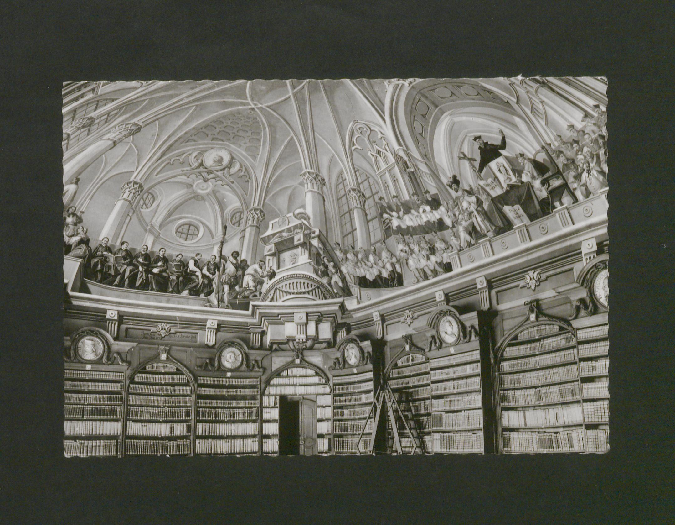 Az egri Főegyházmegyei Könyvtárat Eszterházy Károly püspök hozta létre az általa tervezett egri egyetem részeként. Létrehozásában Giuseppe Garampi nuncius és Büky József könyvtáros voltak a legfőbb segítői. A főpásztor halála után annak hagyatékával együtt 20293 kötetetben 13879 művet foglalt magába. A továbbiakban a könyvtár elsősorban hagyatékokból gyarapodott. Mennyezetfreskóját Johann Lucas Kracker festette, amely a tridenti zsinatot ábrázolja. Az alkotáson 150 személy látható. A bibliotéka őrzi egyebek mellett Mikes Kelemen Törökországi levelek c. művének eredeti példányát, valamint a Magyarországon található egyetlen eredeti Mozart levelet.