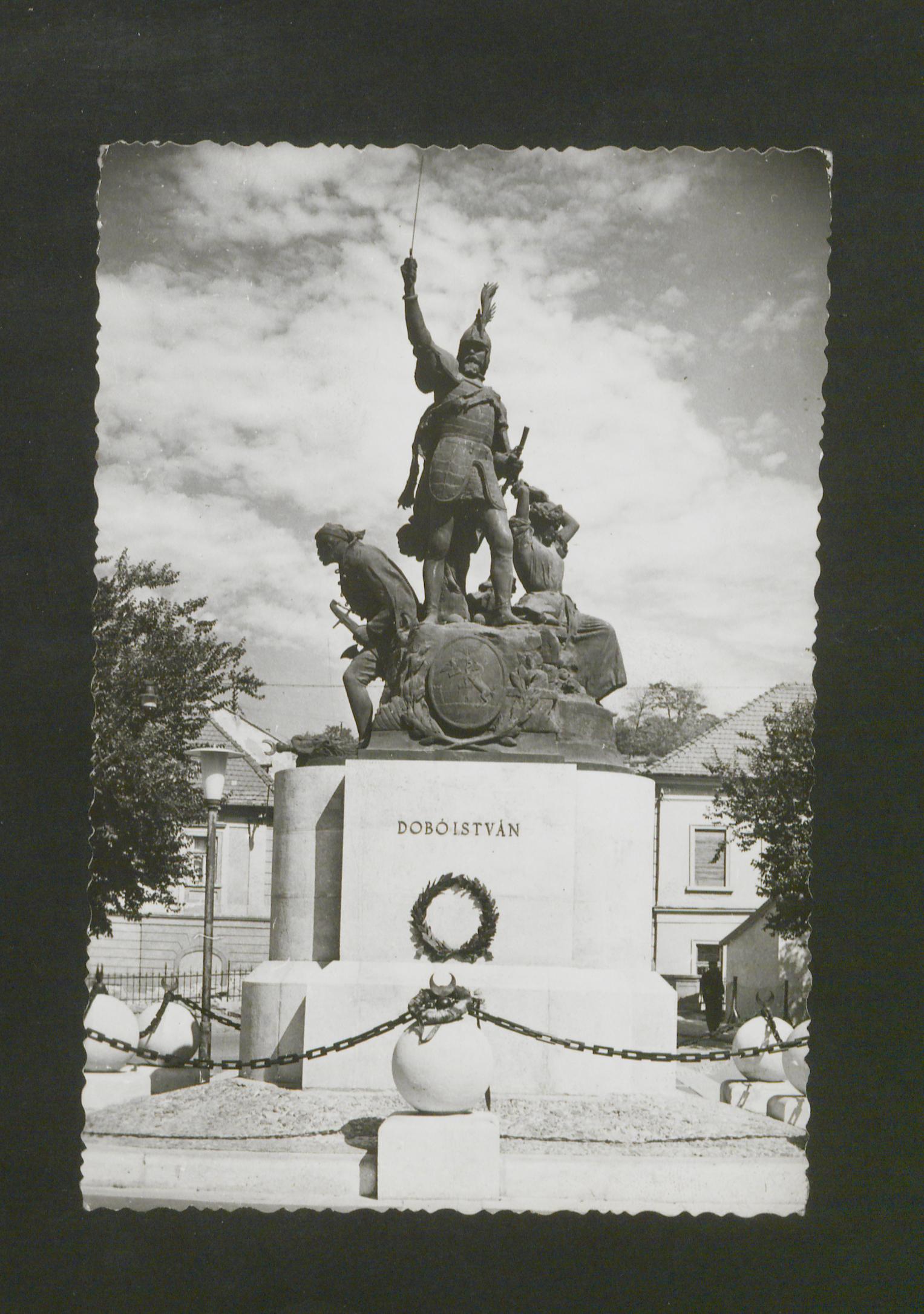 Egy Dobó szobor Egerben torténő felállítására előszor 1882-ben volt kezdeményezés. A városi képviselőtestulet egyhangúlag elfogadta a javaslatot, de az végul nem valósult meg. Tobb hasonló esetet kovetően dr. Kosztler József városi főorvos volt az, akinek a javaslata alapján 1901-ben a városi kozgyűlés 2.000 koronát szavazott meg a szobor koltségeihez. Az alkotás terve 1905 nyarára lett végleges, amelynek alapján Stróbl Alajos szobrászművész elkészítette azt. A felavatására 1907. augusztus 18-án a XVII. Országos Dalos Unnep idején kerult sor.